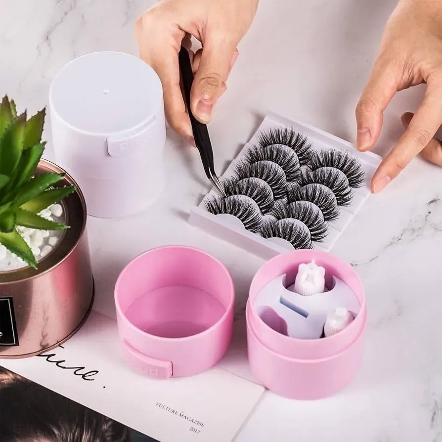 contenedor hermético para pegamento de extensiones de pestañas.